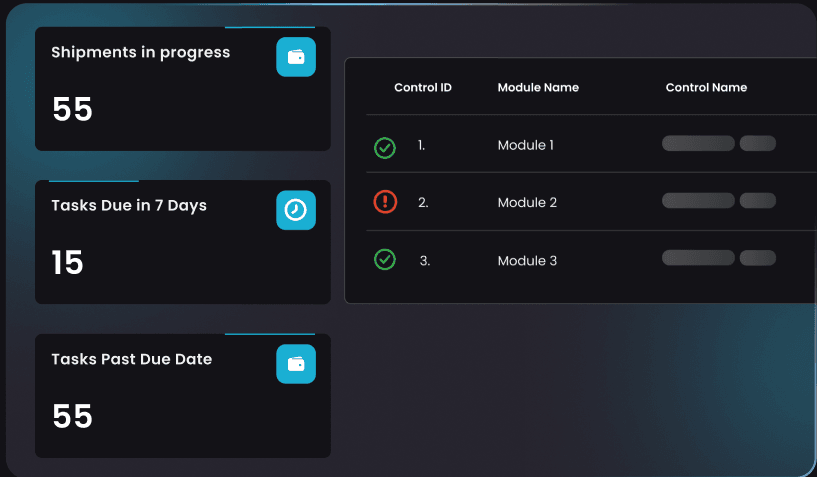 Effortlessly monitor all shipments in progress, track pending tasks, and gain complete traceability for each shipment